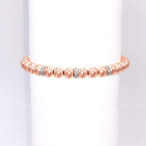 Price available upon request14k Gold Bead Bracelet with Pave Diamond Rondelle