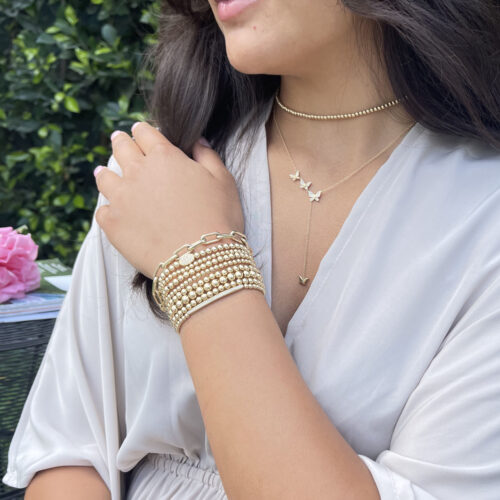 Price available upon request14k Gold 3mm Bead Bracelet With Pave Diamond Bar
